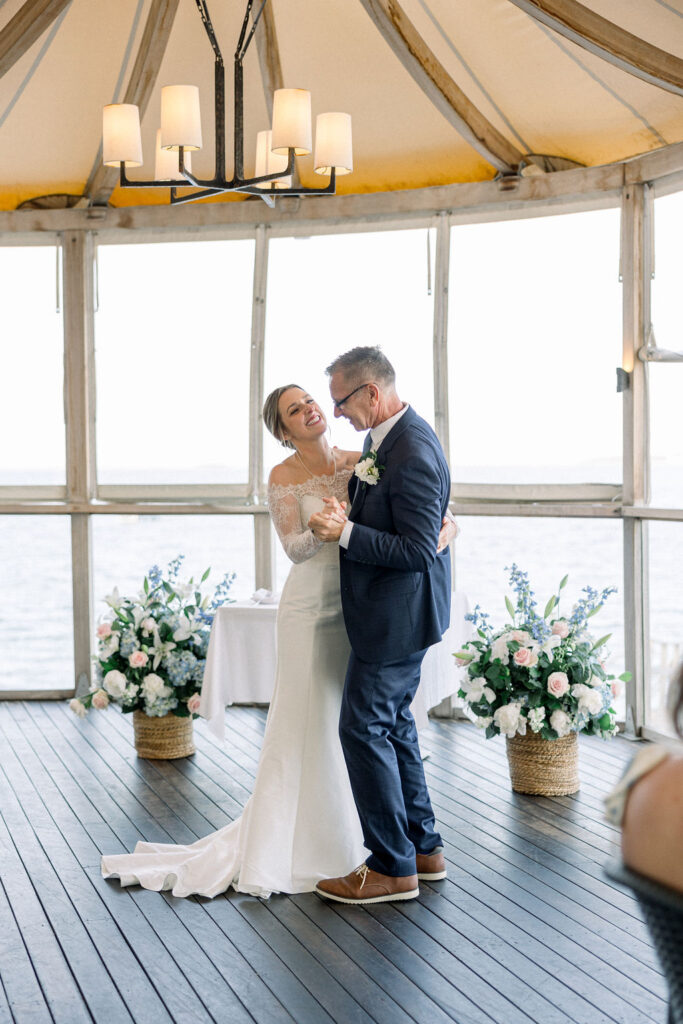 An Wequassett wedding provides endless opportunities for luminous, editorial portraits. Couples can stroll along the docks, pose against white shiplap cottages, or stand beneath sweeping arches that frame the ocean. The property’s natural light and seaside textures create a perfect canvas for romantic imagery.